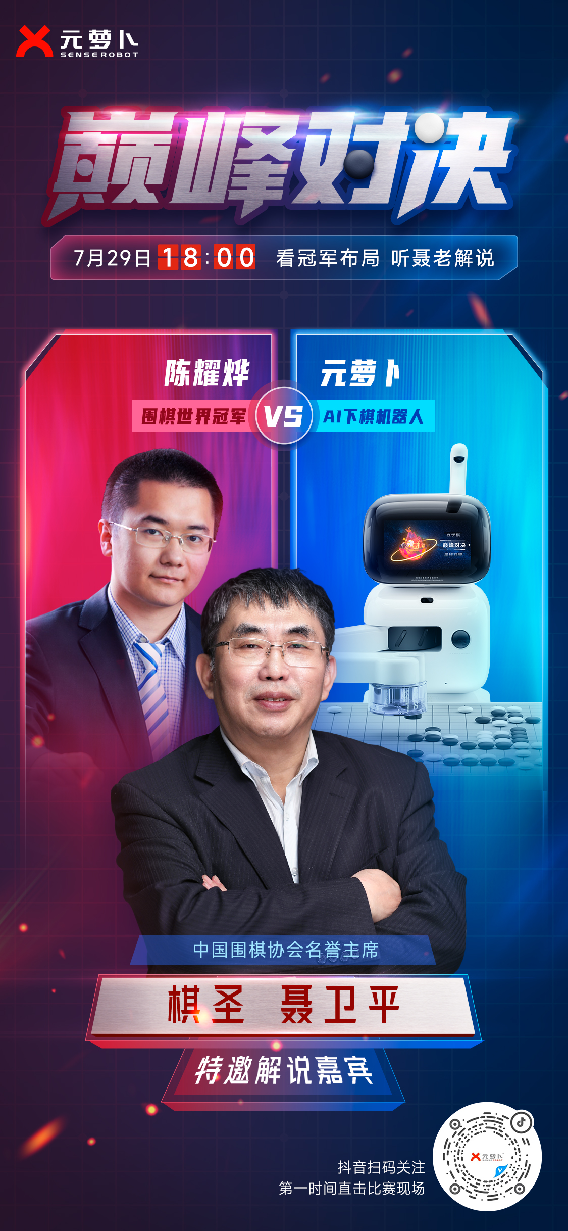 而今,一场引人瞩目的巅峰对决即将在北京举行——7月29日,围棋世界冠军陈耀烨将与元萝卜围棋机器人的巅峰棋力进行对战,上演人工智能与人类顶尖智慧的碰撞。