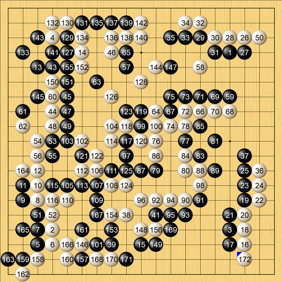 许家元执黑,172手,爽快认输,这样,谢尔豪攻擂成功。明日由韩国队卞相壹攻擂。