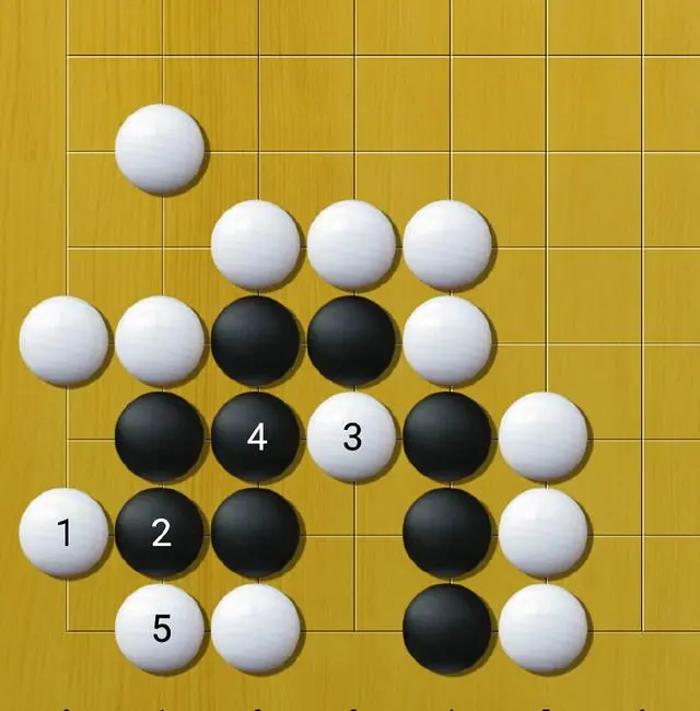 我们看得出来,白棋如果要杀黑棋,显然不能让黑棋把边界关闭起来。但是直接从外往里面冲似乎不能成立。该怎么办呢?