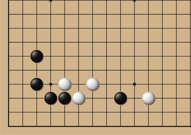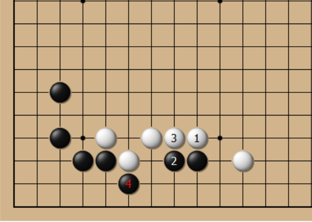 图一,白1,应对失误,上当受骗,黑二路顺利渡过,得利,白棋失去根据地。