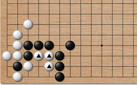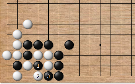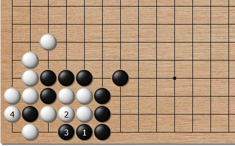 失败图:黑1打吃,白2粘上,黑3再打吃,白4提子。此时黑棋宣告失败,再无吃掉白棋的可能。