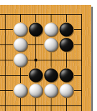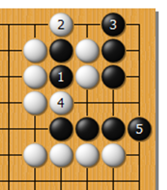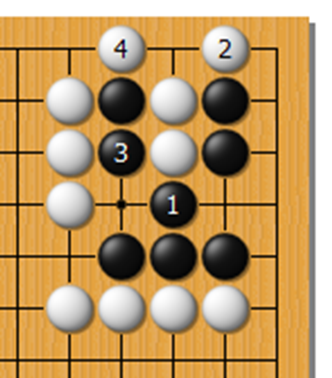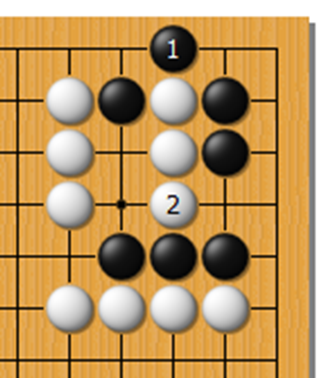 失败图 2,黑想当然,却没有注意到白可以利用到最初学习的打二还一的!黑无法做出两眼!