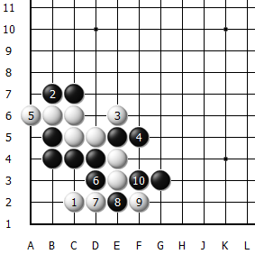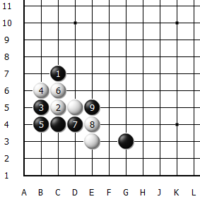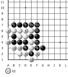 我们来学习一个经典骗招,白棋飞压时,黑棋拆二这手气是著名18目半的骗招。