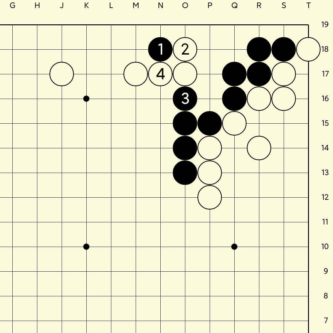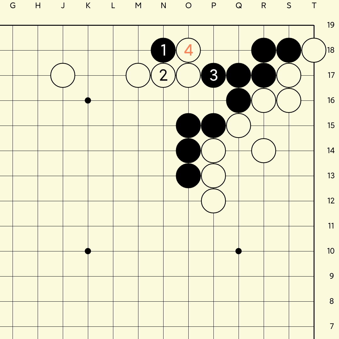 黑1透点,手筋。目的是先手护断(P16位断点),白2挡,则黑3先手护断。